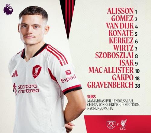 北京时间11月30日22:05,英超第13轮展开较量,利物浦客场对阵西汉姆联。赛前双方首发公布。
