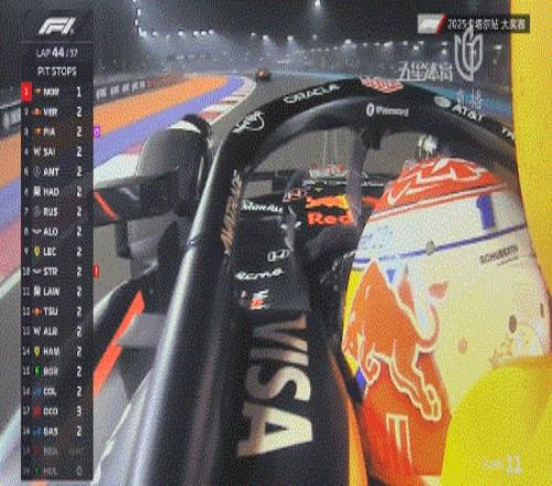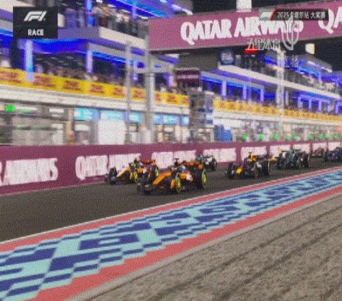 五盏红灯熄灭,卡塔尔大奖赛正式开始!皮亚斯特里的起步相当不错,脏侧起步的诺里斯被维斯塔潘在起步后超越,进入一号弯时已经让维斯塔潘拿到了第二的位置。