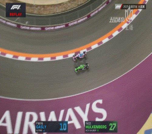 第七圈,霍肯伯格在一号弯想要超越加斯利,但在对抗中双方发生碰撞,霍肯伯格撞上赛道指示牌退赛,并且触发黄旗!赛会出动安全车!