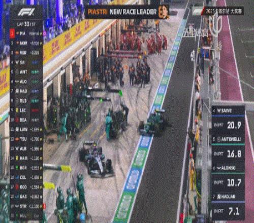 随后,除了两辆麦克拉伦之外的所有赛车都进站完成换胎!这就意味着,这些获得“免费进站”的赛车只需要再完成一停即可,而皮亚斯特里和诺里斯还需要完成两停!值得一提的是,在卡塔尔一次进站需要消耗26秒的时间!