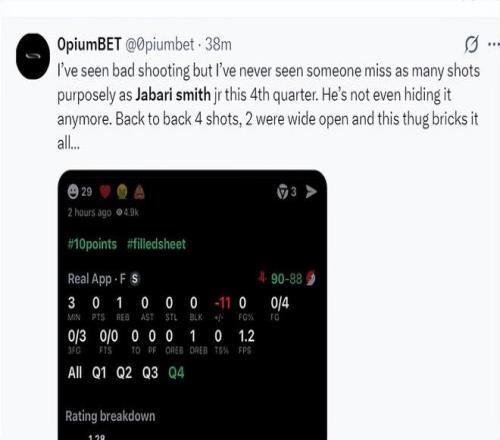 休媒:小贾第四节的表现无论是进攻还是防守都是火箭输球的关键,他一直是球队最薄弱的一环,在申京受伤后他的表现更是糟糕透顶。